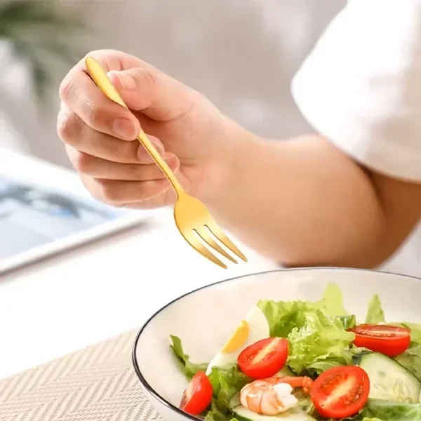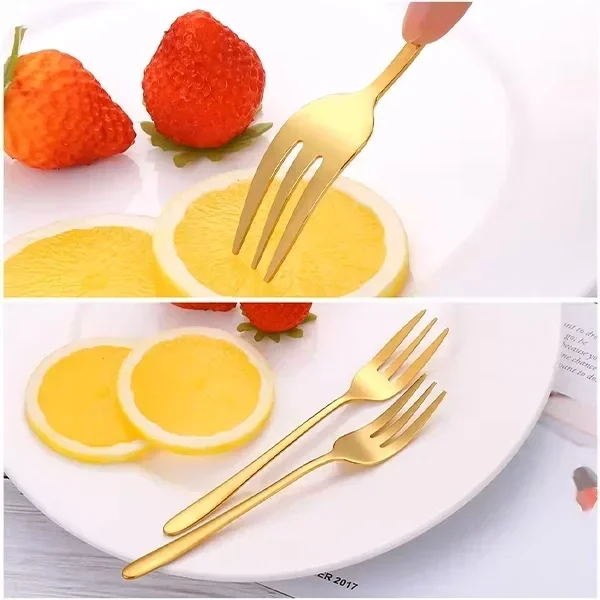 Sofralarınıza zarif bir dokunuş katmak için mükemmel bir tercihtir Şık altın renkli parlak tasarımı, tatlılarınızı servis ederken sofralarınıza şıklık ve zarafet katar. Dayanıklı ve kaliteli malzemelerden üretilen bu tatlı çatalı seti, hem günlük kullanım hem de özel davetler için ideal bir seçimdir. Set, 6 adet tatlı çatalından oluşur ve her bir çatalın ergonomik tasarımı, rahat bir kullanım sunar