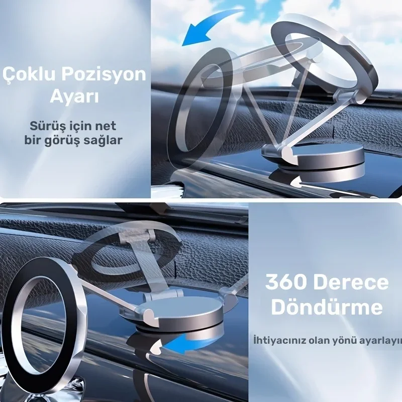 Bu manyetik mıknatıslı araç telefonu tutucu, sürüş sırasında telefonunuzu güvenli ve kolay bir şekilde konumlandırmanızı sağlar. Güçlü mıknatıs teknolojisi sayesinde telefonunuz yere düşmeden sabit durur ve sürüş güvenliğinizi artırır. Kompakt tasarımı sayesinde araç içinde göze batmadan, şık ve pratik bir kullanım sunar.