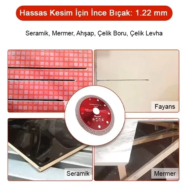 Profesyonel ve hassas kesimler için tasarlanan Turbo Elmas Testere Kesme Diski, 1.15 mm kalınlığı ve turbo segment yapısıyla granit, mermer, seramik gibi sert yüzeyleri kolayca kesmenizi sağlar. Hem dayanıklılığı hem de keskinliğiyle uzun ömürlü performans sunar